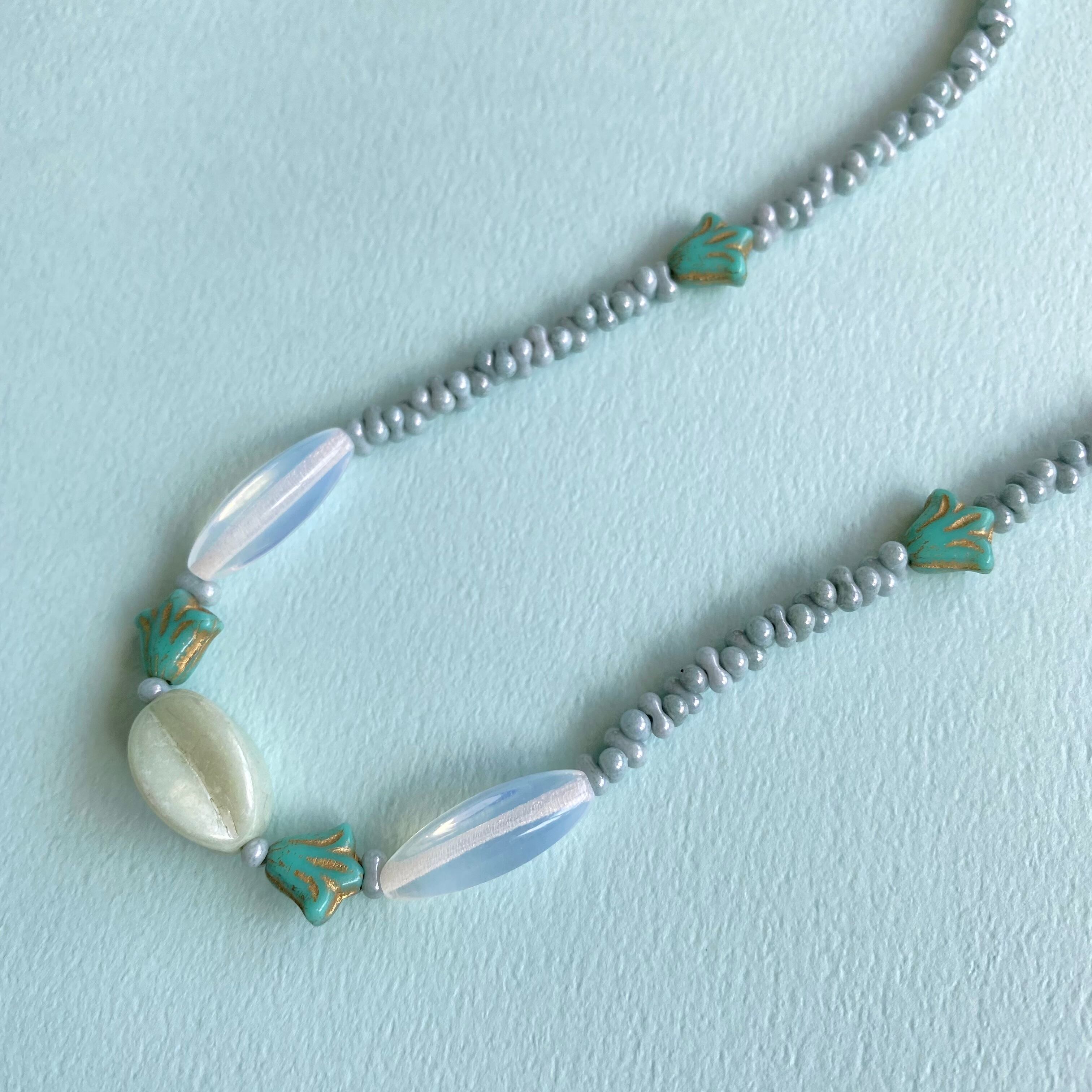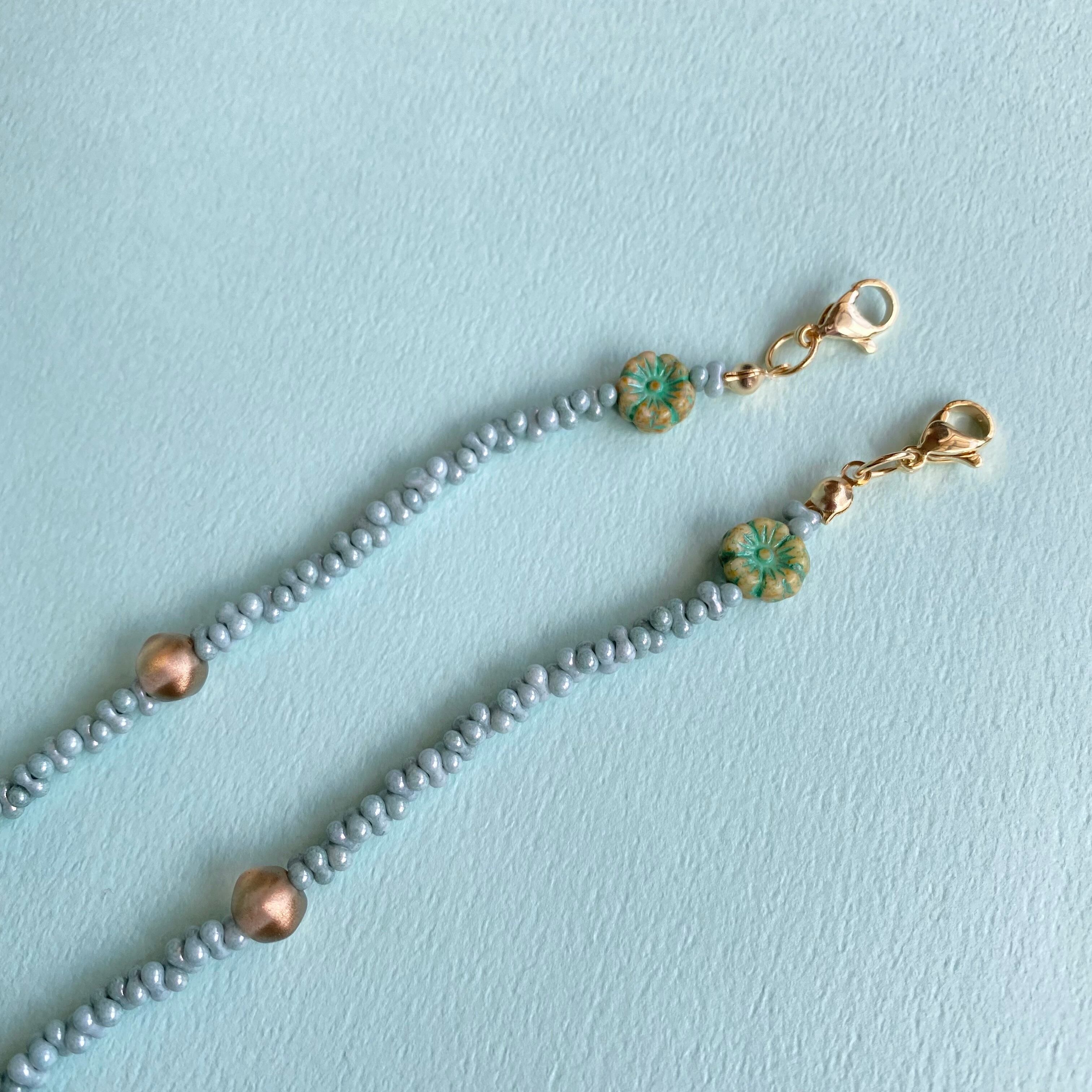 全てチェコビーズを使用しており、まるでネックレスの様な仕上がりです。