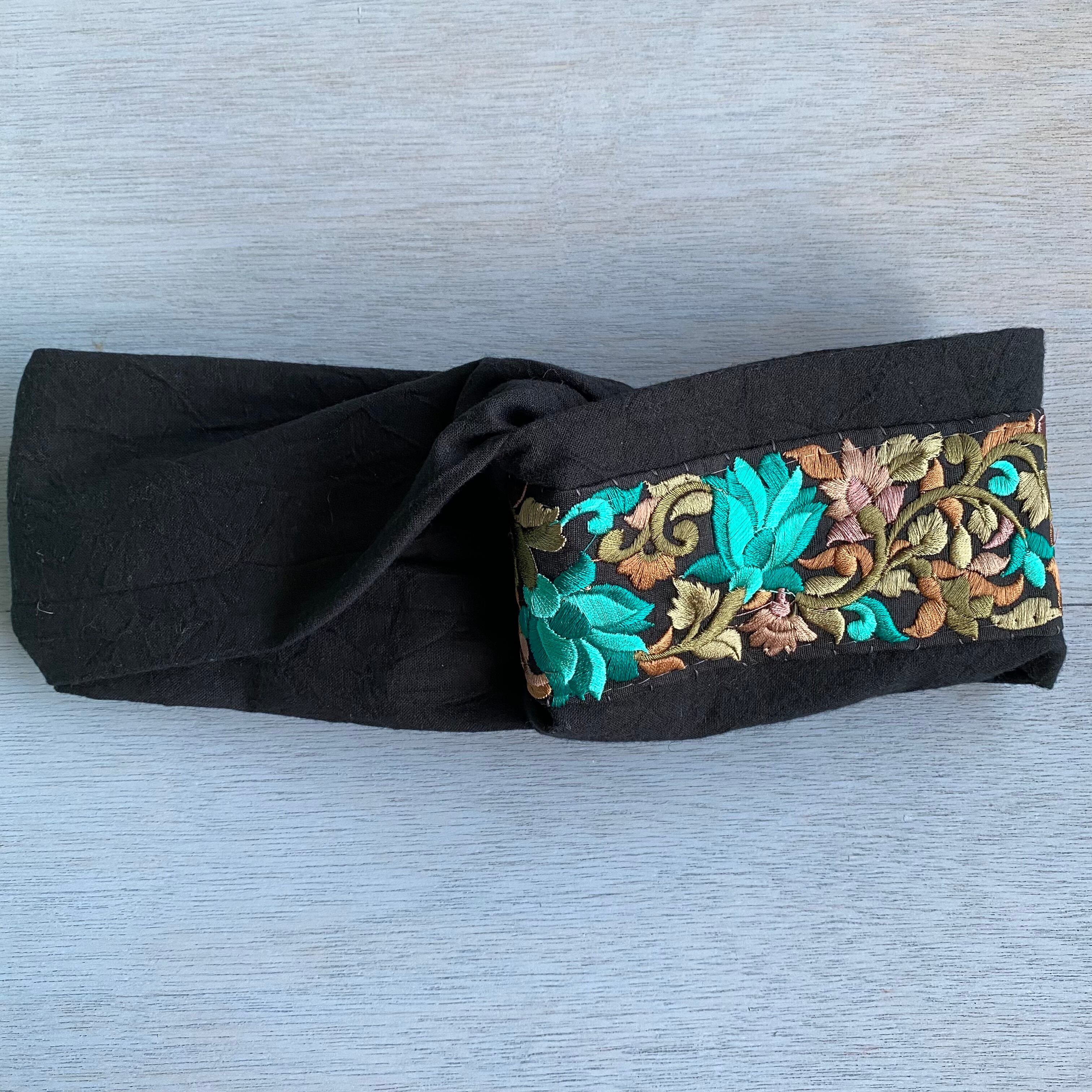 【ヘアターバン】ロータス刺繍インドジャガード織りリボン グリーン系