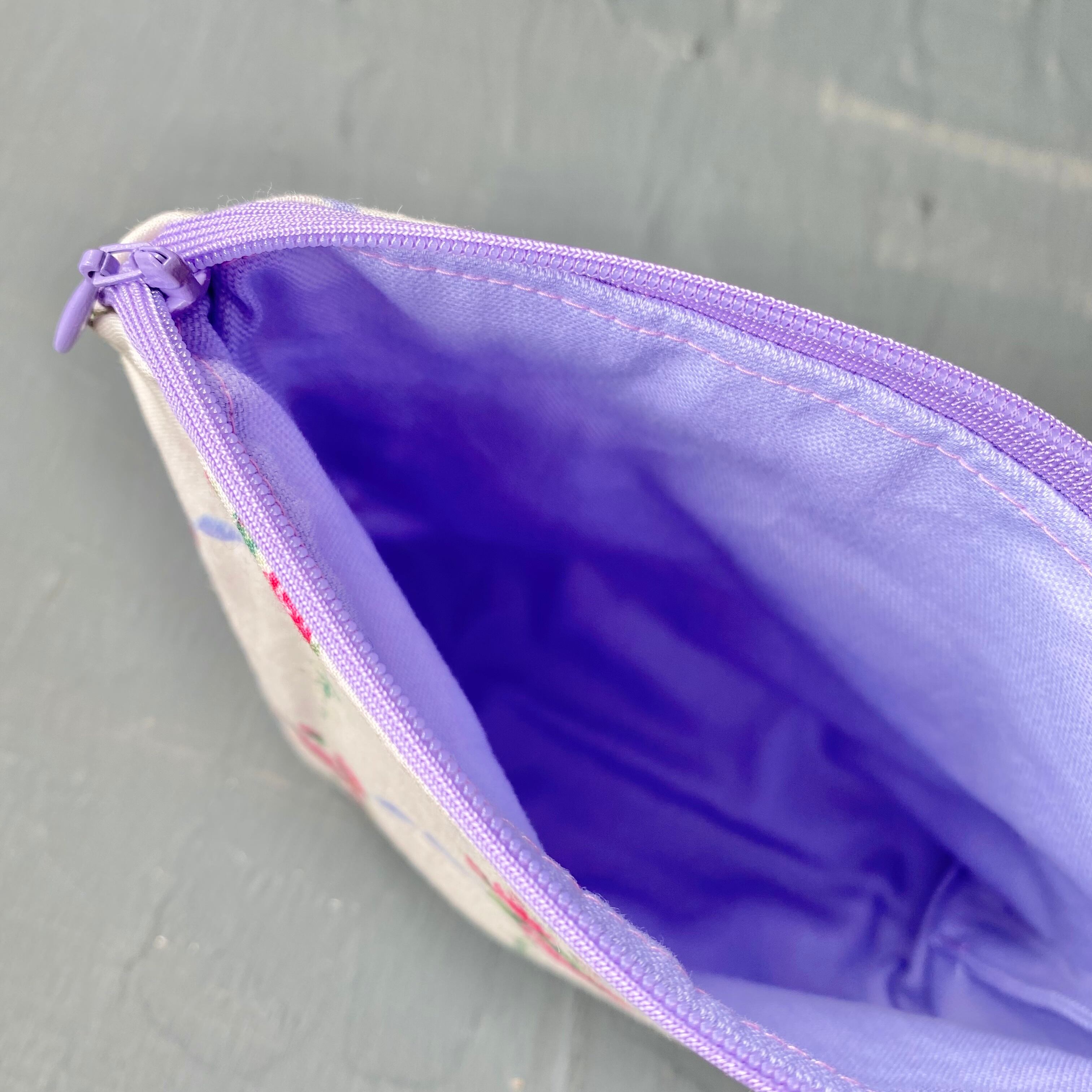 内側はラベンダー色で、接着芯も入っているのでしっかりしています。