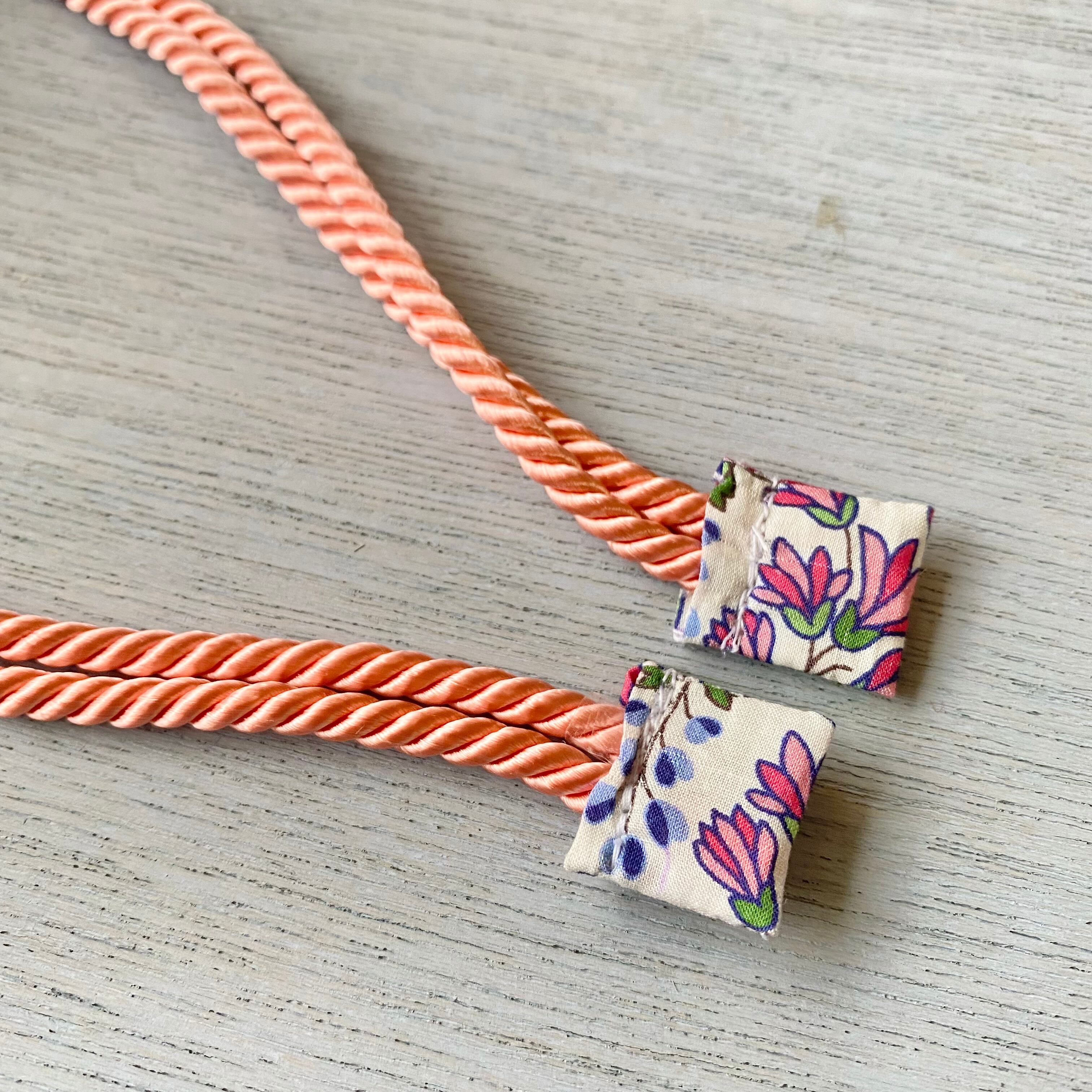 紐にはサーモンピンクの光沢あるロープを使用していて高級感があります。